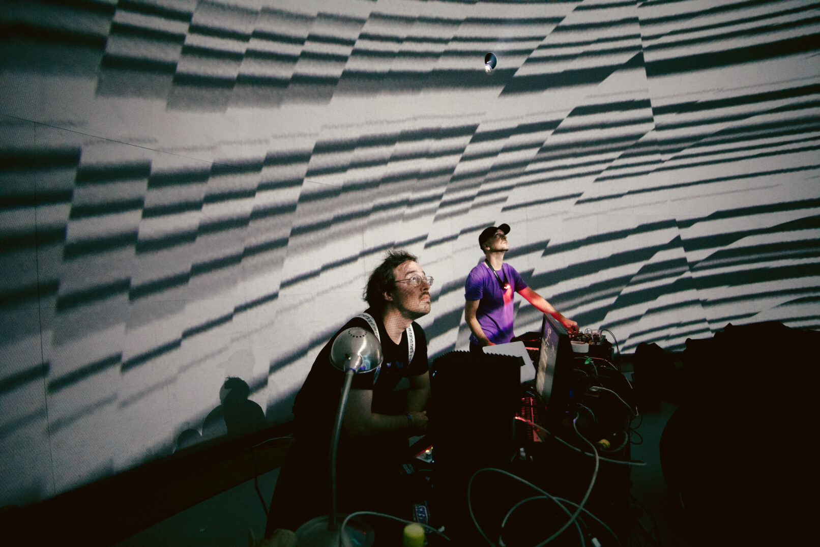 Patrik Lechner (Video) & Peter Kutin (sound, concept) realized a residency at SAT Montreal’S full-dome; a piece for immersive 360° projection, Ambisonic-Sound, kinetic sound- / lightobject (rotating speaker-system). Developed between 2019 and 2022 during two residencies. The piece has a duration of 40 minutes. Visitor’s quote : ‚Takes your head off harder‘
